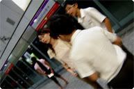 #4/ when some can't resist posing for the camera regardless whether they're in the bus or not,some being typical emos in the bus listening to their mp3s,some looking shocked when they see a camera focusing on them,and one,trying to cover his face to hide from being captured but fails to do so. (;